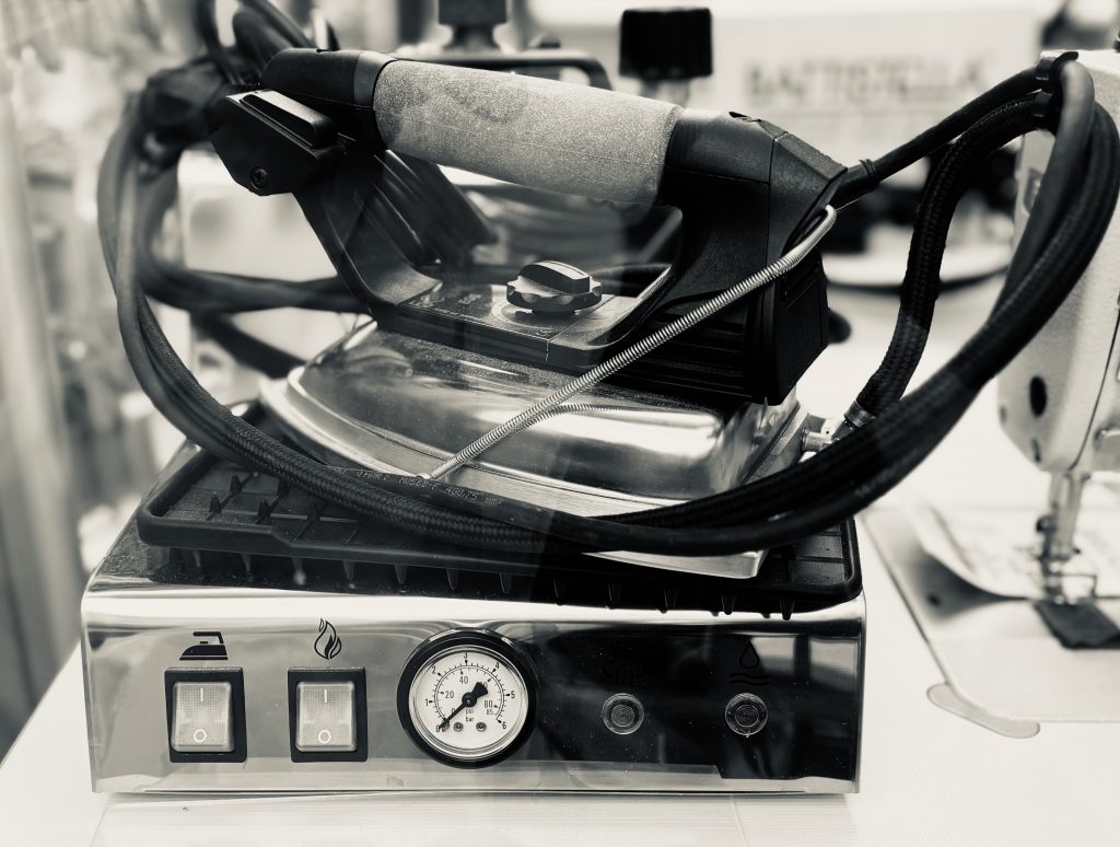 Vorher schaue ich noch bei Yavas vorbei, auf der Suche nach Material für die Schulterpolster. Die fertigen Varianten sagen mir weder in Stärke noch Material zu. Auf meine Frage nach Cotton Padding ernte ich ratlose Blicke, erwähne aber – vielleicht im Hinblick auf den Theaterabend – auch Molton. Die beiden lächeln, verschwinden im Keller, und ich bewundere derweil wieder einmal ein Objekt der Begierde (eine kleine Dampfbügel-Station). Kurz darauf eile ich mit einem halben Meter Molton durch den Regen.