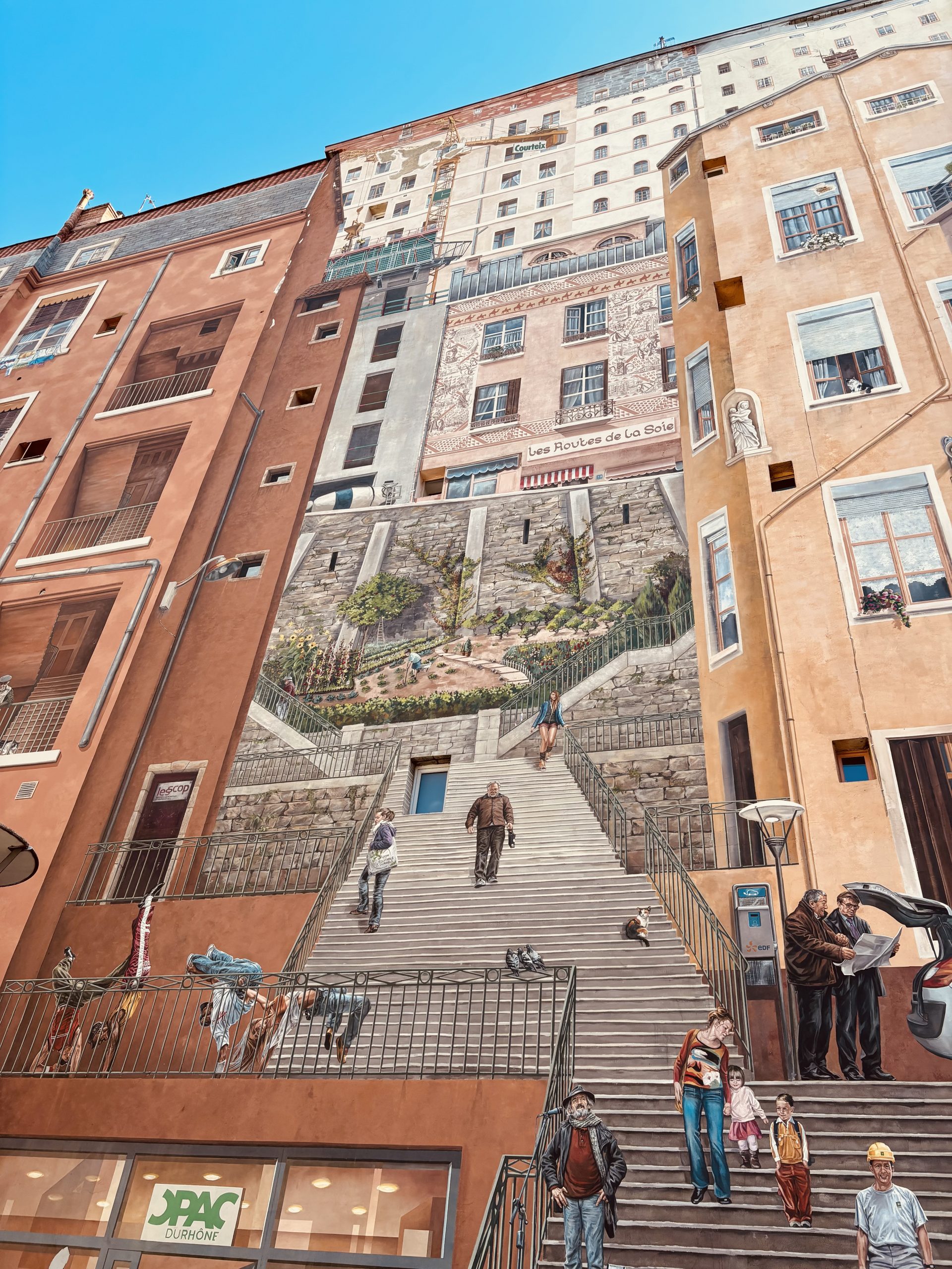 Mit der Industriellen Revolution im frühen 19. Jahrhundert zog die Seidenproduktion aus den engen Gassen von Vieux Lyon mit seinen Renaissancehäusern hinauf auf den Hügel Croix-Rousse.