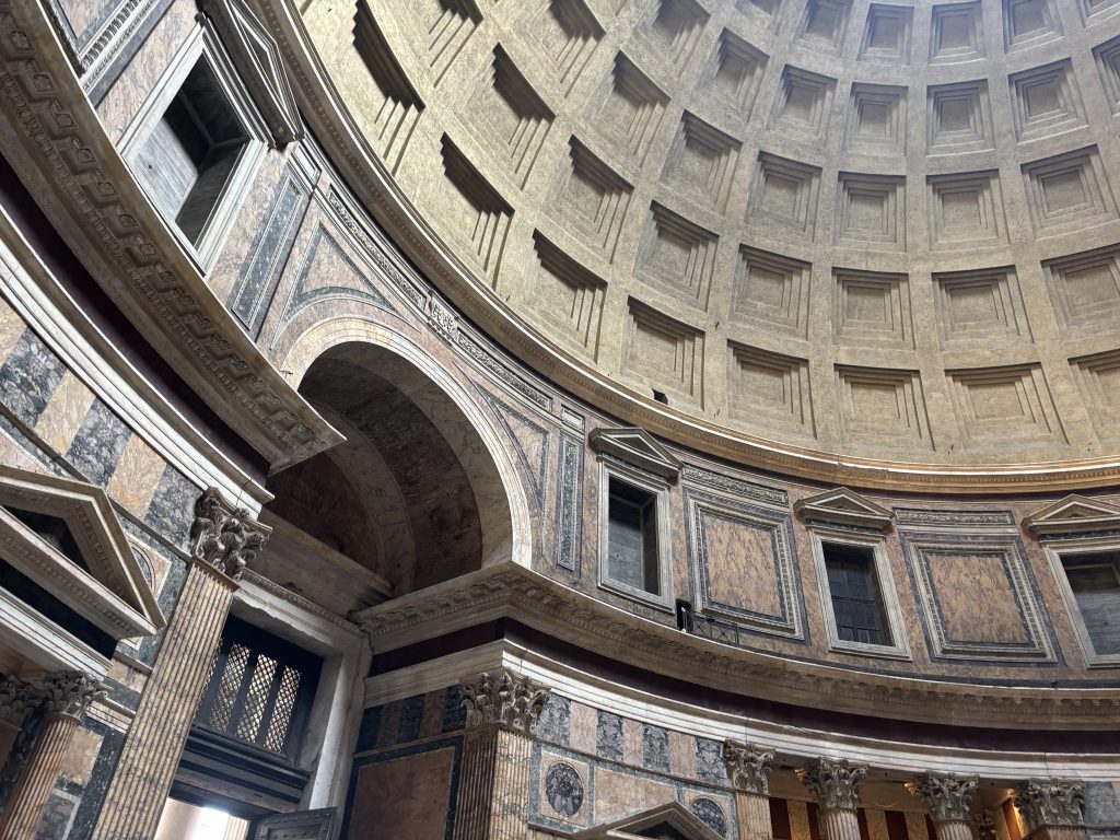 1. Wir waren 2018 im November in Rom, und es war wunderbar. Naja, bis auf den Nachmittag mit Wolkenbruch, als am Rückweg vom Centrale Montemartini selbst der Bus nicht mehr weiterkam und alle im Regen aussetzte. Fotos des Pantheon kann ich die gleichen bieten, und noch unzählige mehr. Nur die Stoffkauferfahrung, die habe ich leider nicht gemacht. Nicht nur wegen der Sprachbarriere. Auch weil ich im Bereich feine Stoffe noch zu wenig weiß. Und die drei Mitreisenden auch nicht zu sehr strapazieren wollte. Deshalb habe ich dich jetzt gerne bei deinem Stoffkauferlebnis begleitet. Und bin sehr gespannt, wann und in welchem Zusammenhang du uns deine Romerinnerung präsentieren wirst.
